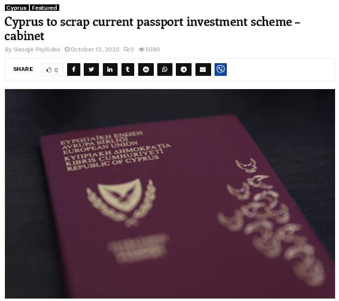 當(dāng)?shù)貢r(shí)間10月13日,據(jù)塞浦路斯郵報(bào)消息,塞浦路斯將廢除目前的護(hù)照投資項(xiàng)目。