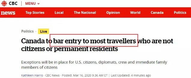 特魯多稱,這些限制措施將于18日生效,除部分旅客外,所有海外旅客被禁止入境加拿大!其次,航空運(yùn)營(yíng)商將禁止任何有病毒癥狀的人乘坐飛機(jī)。