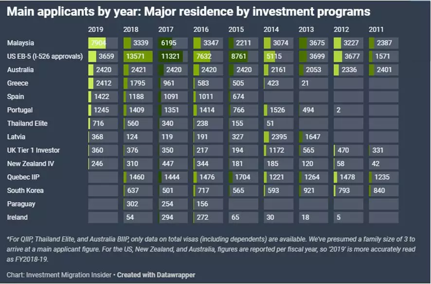 這一數(shù)字使馬來西亞第二家園以絕對(duì)優(yōu)勢(shì)成為世界最火投資者簽證項(xiàng)目,遠(yuǎn)超排名第二位、共收到3659份申請(qǐng)案的美國EB-5簽證。澳大利亞、希臘、西班牙和葡萄牙投資移民簽證依次緊隨其后。