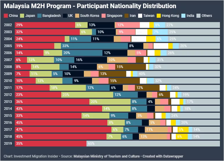據(jù)馬來西亞旅游和文化部副秘書長(zhǎng)透漏,去年中國大陸公民約占第二家園項(xiàng)目所有申請(qǐng)量的35%,此外,前10的申請(qǐng)人來源國/地區(qū)還包括韓國、香港、日本、孟加拉、英國、新加坡、美國、臺(tái)灣、印度,但沒有透漏各個(gè)國家/地區(qū)的具體數(shù)字。