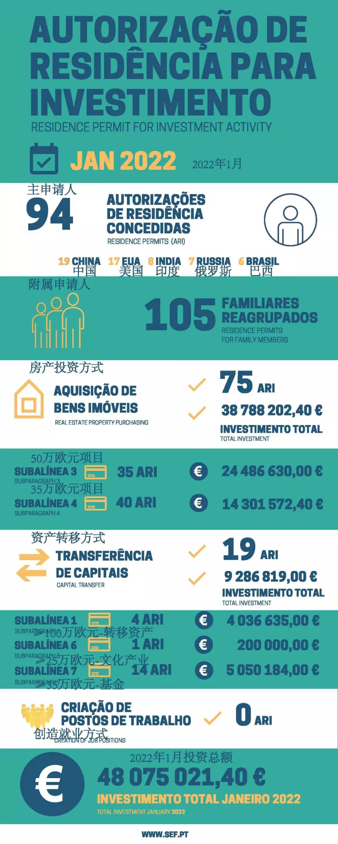葡萄牙黃金簽證1月數(shù)據(jù)出爐