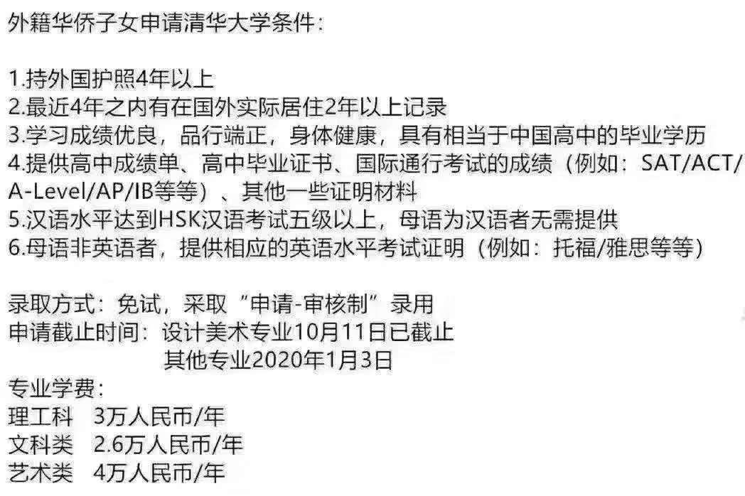 此外,對(duì)于已經(jīng)入籍取得外國(guó)護(hù)照的學(xué)生,還可直接免試進(jìn)清華!根據(jù)清華大學(xué)最新的2020年國(guó)際學(xué)生招生簡(jiǎn)章,持海外護(hù)照4年以上,過(guò)去4年中有2年的海外居住經(jīng)歷,即可憑高中成績(jī)單、高中畢業(yè)證書(shū)等,直接免試進(jìn)清華!