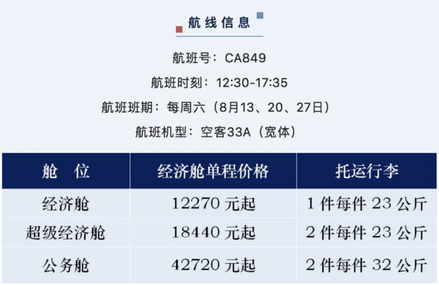 中國國際航空8月8日宣布,將從2022年8月13日起恢復上海浦東-倫敦希斯羅直飛航班,航班號:CA849,航班班期:每周六(8月13、20、27日)?,F(xiàn)已可預訂,到11月前每周一班。從英國回國直航航班自9月17日開通,航班號CA850。此外,北京直飛倫敦航班也于8月11日起恢復,到11月前每周一班。